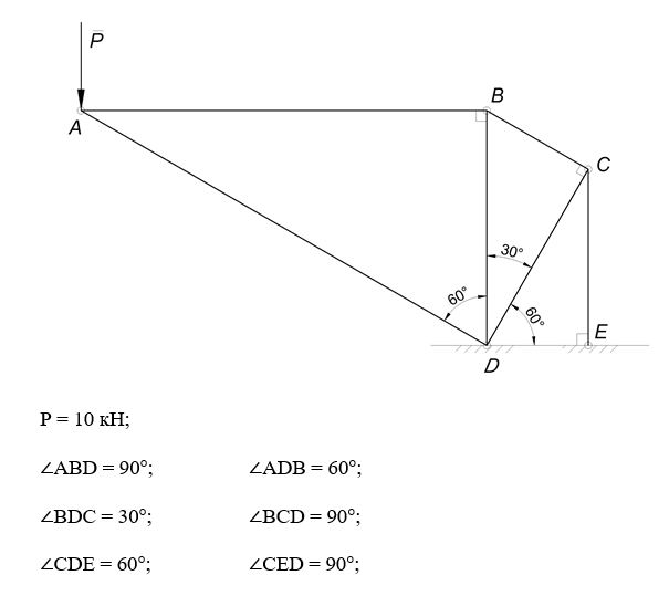 Расчет ферм (жесткие стержневые конструкции) (61 шт.)	Название или условие:Ферма весом 400 kH нагружена силами P = 100kH и Q = 40kH.