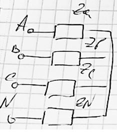| Uсети = 127 В Za = 3+j4 Ом Zb = 4-j3 Ом Zc =7.3 Ом. Найти Uл, Uф, Iл, Iф, In, P, Q, S Построить векторную диаграмму. Решить методом комплексных чисел.